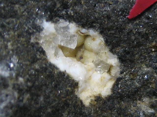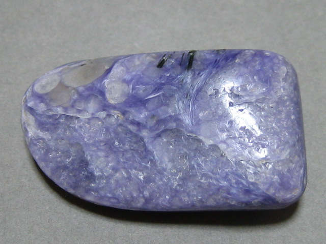 流線形の模様が 素敵です。ロシアの女性鉱物学者により発見された新鉱物です。中の黒色長柱状結晶はエジリン輝石のようです。