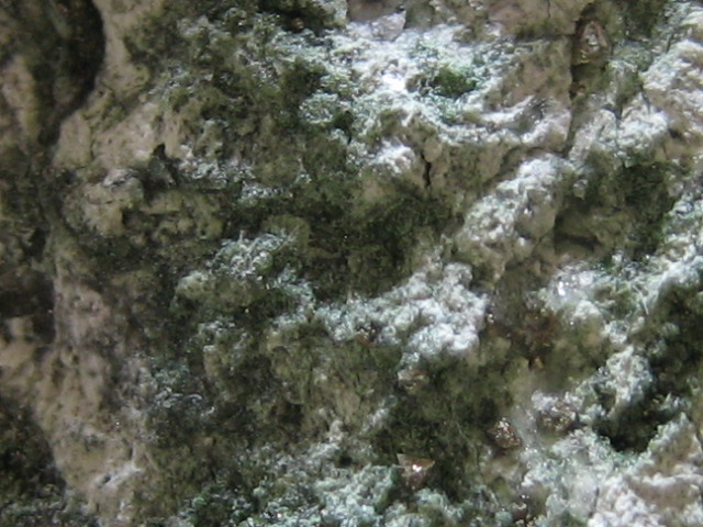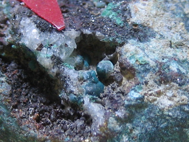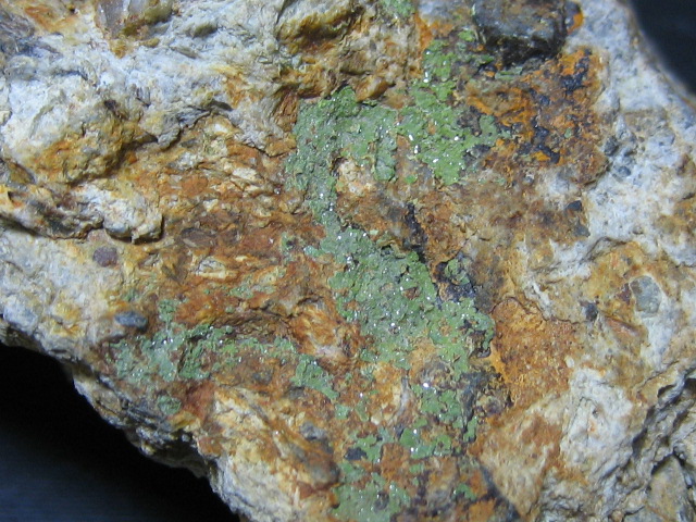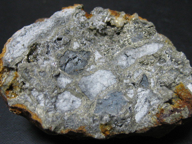 採集した白鉄鉱です。画面下の方に金属光沢のものが幾つか見られますが、小さいためうまく撮れないです。