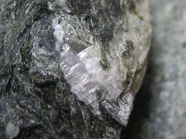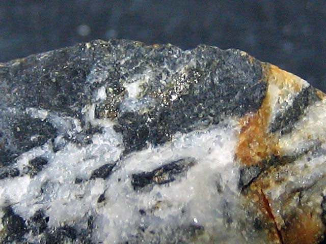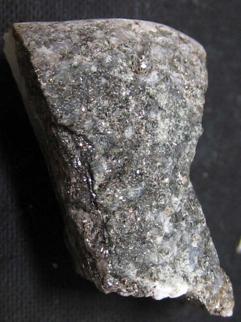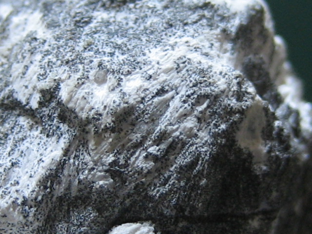 下の写真の拡大です。方解石を含みます。小さな方鉛鉱の粒が付着しています。