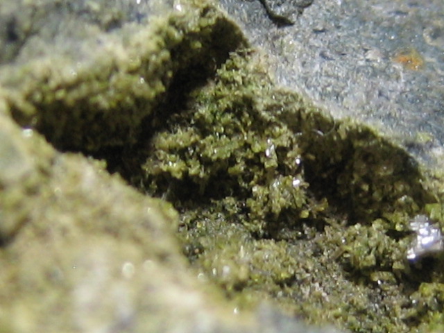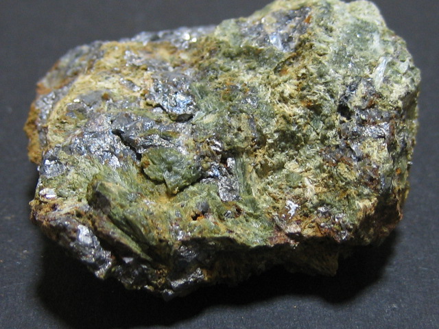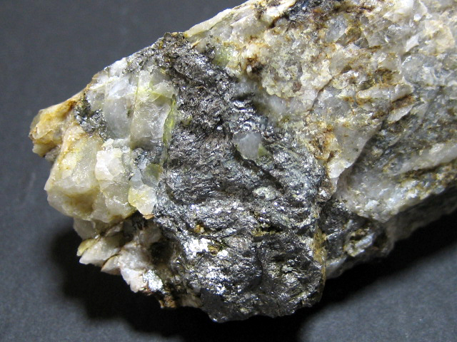 母岩の表面にゲルスドルフ鉱が沢山付いています。正八面体の結晶も少し見られます。