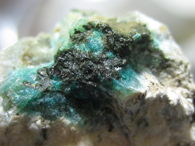 緑色の扁平状結晶をしたチロル銅鉱です。