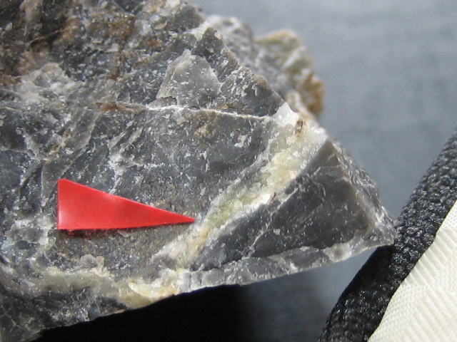 今まで、楢山、柳新田、中ノ沢と探し回ったが見つからなかった苦土沸石が、頂いた玉髄に付いていました。感激!
