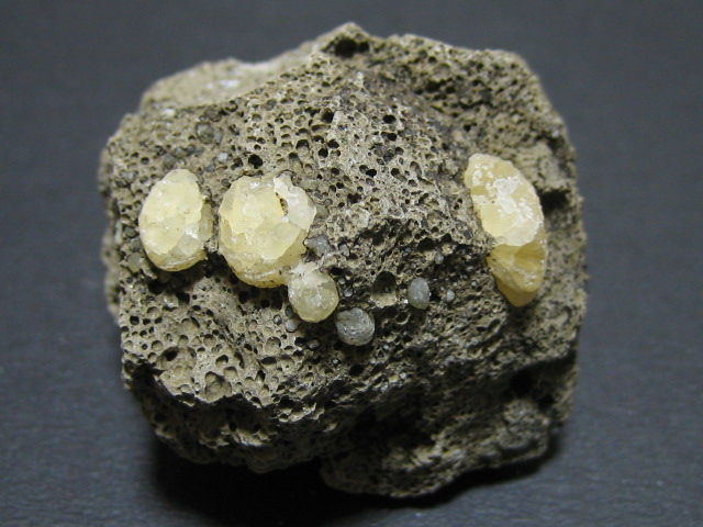 溶岩の上に小さな方解石が沢山密集しています。