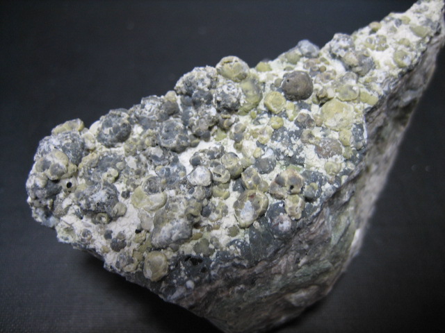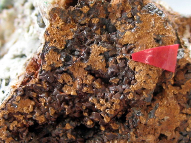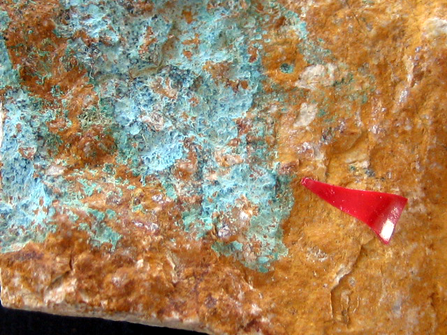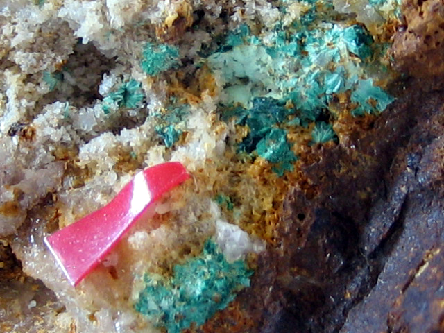 二次鉱物の産出で全国的によく知られた鉱山で、美しく結晶化した緑や青色の鉱物が見られることで有名です。黄銅鉱、方鉛鉱、閃亜鉛鉱の他に、孔雀石、ブロシャン銅鉱、青鉛鉱、藍銅鉱、硫酸鉛鉱などの二次鉱物が採れます。その他、尾去沢石、ラング石、ビーバー石、青針銅鉱、レッドヒル石、シューレンベルグ石などの珍しい鉱物も見られます。
