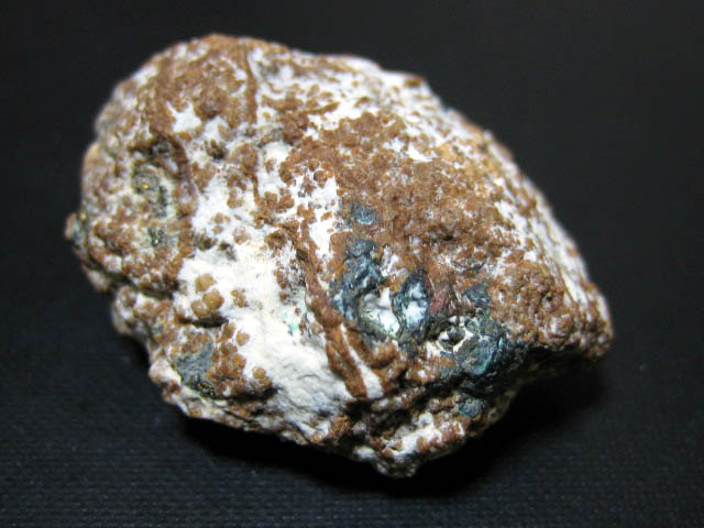 白色部はカオリナイトのようです。黒色部は閃亜鉛鉱。