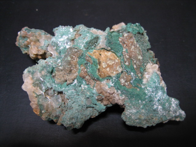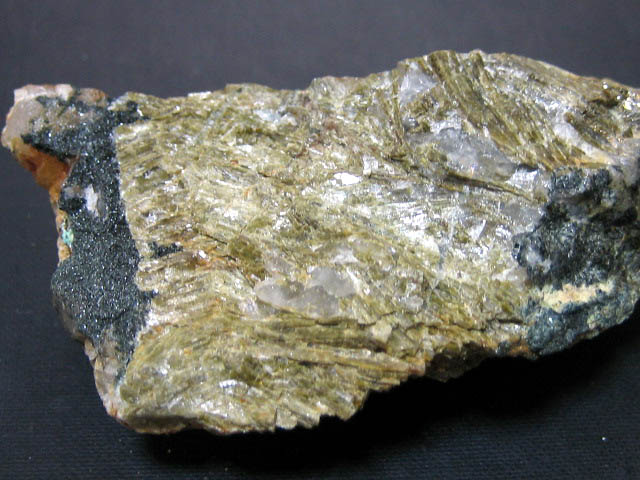 緑色のセラドン石の中に白色毛状のモルデン沸石が見えます。