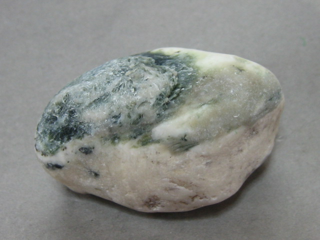 Fe(II)は、黒っぽい緑色 (オンファス輝石、透閃石「ネフライト」)
