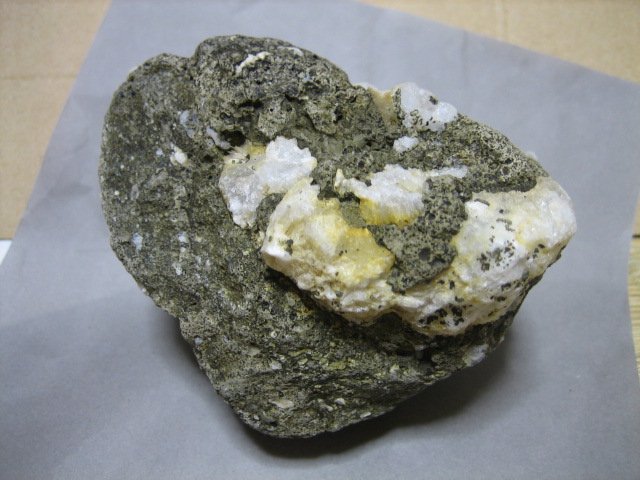 流線形の模様が 素敵です。ロシアの女性鉱物学者により発見された新鉱物です。中の黒色長柱状結晶はエジリン輝石のようです。