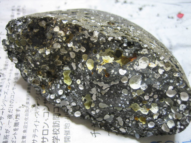 黒色ヒスイの黒色は非常に小さな石墨の粒が入っているためで、石墨とヒスイの結晶の間にはバナルシ石というバリウムを含む大変珍しい鉱物が入っていることが良くあるそうです。