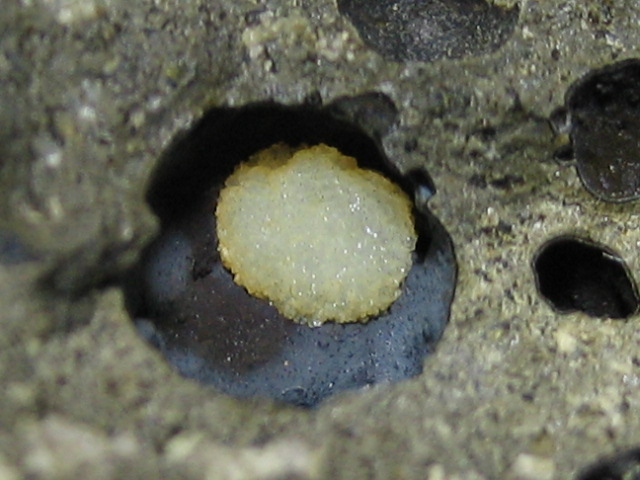 玄武岩を割ってみたら、中に可愛い沸石が鎮座していました。トムソン沸石です。