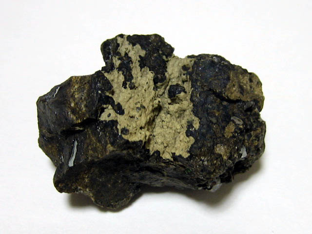白色部はカオリナイトのようです。黒色部は閃亜鉛鉱。