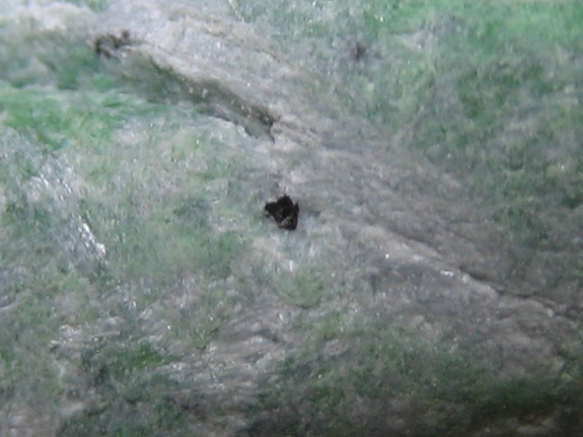 流線形の模様が 素敵です。ロシアの女性鉱物学者により発見された新鉱物です。中の黒色長柱状結晶はエジリン輝石のようです。